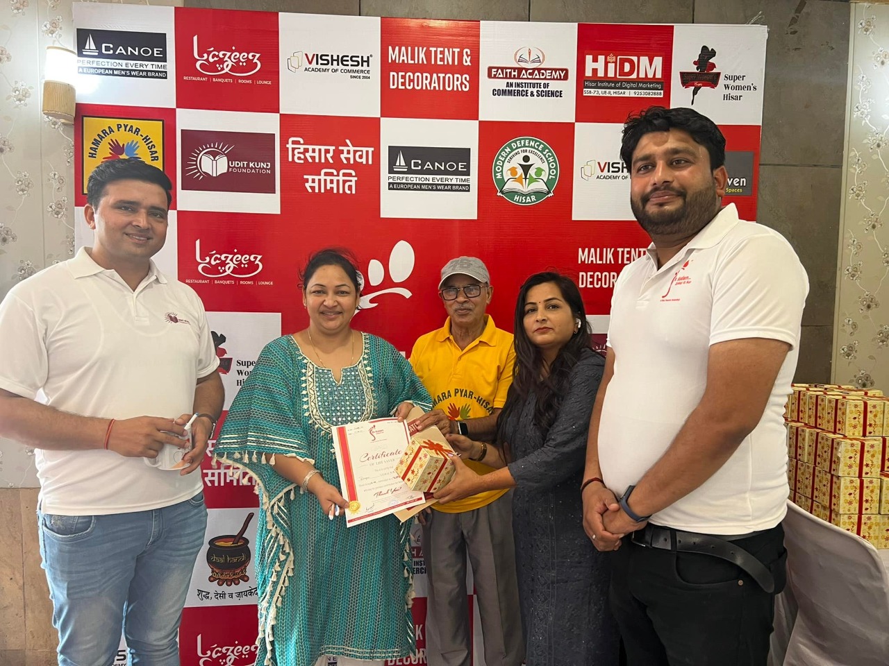 हमारा प्यार हिसार, हिसार सेवा समिति, उदित कुंज फाउंडेशन और सुपर वुमन एनजीओ के सहयोग से एक कदम ज़िन्दगी की ओर एनजीओ द्वारा अग्रसेन भवन में आयोजित विभिन्न निजी ब्लड बैंकों के माध्यम से 500 यूनिट रक्त एकत्र किए गए। इस अभियान में नलवा ब्लड बैंक, महात्मा गांधी अस्पताल, सर्वोदय ब्लड सेंटर, श्री राम ब्लड सेंटर, नेशनल ब्लड सेंटर और एसएमएस अस्पताल ने हिस्सा लिया। लज़ीज़ रेस्तरां, विशेष एकेडमी ऑफ कॉमर्स, 11वें हेवन, कैनो, फेथ एकेडमी ऑफ कॉमर्स, HiDM- हिसार इंस्टीट्यूट ऑफ डिजिटल मार्केटिंग और मलिक टेंट एंड डेकोरेटर्स जैसे कई अन्य संगठनों ने हिसार रक्तदान शिविर को प्रायोजित किया।