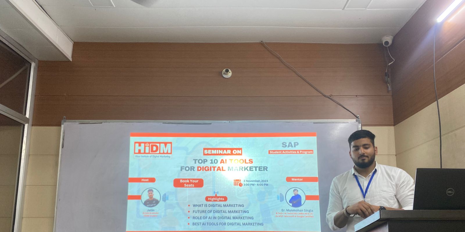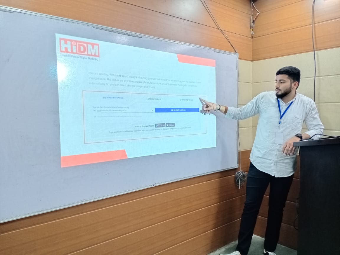 HiDM का डिजिटल मार्केटिंग सेमिनार फेस्ट 2023 का तीसरा चरण 3 नवंबर को शुरू हो गया है। हर साल, HiDM सेमिनार फेस्ट छात्रों द्वारा आयोजित किया जाता है। इस फेस्ट में, डिजिटल मार्केटिंग सीख रहे छात्र भारत के सर्वश्रेष्ठ डिजिटल मार्केटिंग पेशेवरों में से एक, मनमोहन सिंगला के मार्गदर्शन में डिजिटल मार्केटिंग के विभिन्न विषयों पर सेमिनार प्रस्तुत करते हैं।. डिजिटल मार्केटर्स के लिए शीर्ष एआई टूल्स पर सेमिनार 3 नवंबर को आयोजित किया गया।